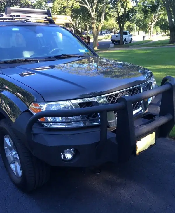Engineered winch mount that accommodates among the largest winches on the market. 1-piece mounting system to allow an easy bolt on application with a custom fit. Gen 1 bumpers come with 5" light buckets. Gen 2 bumpers have D.O.T approved headlight cut-outs. Materials: The highest grade A36 de-scaled premium steel means no mill scale for years of resistance against corrosion and the ultimate bond between the parent metal and finish coating. It's 3/16 inch thick to offer the greatest strength and coupled with the Black Shield it offers even more strength. Finish: Iron Bull Bumpers are shipped with Black Shield! They have worked with Black Shield for many years to create the toughest scratch and dent resistant material. Its appearance is a rough texture with a slightly rubberized feel. Its durability is beyond that of any other material used on a bumper. Front Bumpers: Weight without lights and winch is about 180 lbs depending on application. You can order with or without winch mount and holes. Lights size depends on what year it was made and version. If you have a body lift, it will affect the fit of this product. Show without grille guard option.