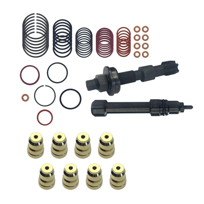 - Includes USA-made Rosewood Diesel injector cup removal/install tool, 8 AVP precision brass injector sleeves, and 8 Alliant Power injector O-ring kits