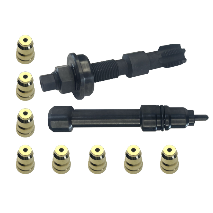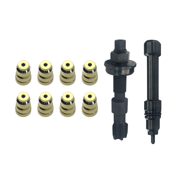 The included tool is shorter than an injector, allowing complete sleeve service directly in the truck with no slide hammer required — a major time and labor saver. Constructed from black oxide–coated solid steel and manufactured entirely in the USA from U.S.-sourced materials, it’s built to withstand years of heavy shop and field use. The supplied injector sleeves meet OEM specs for a precise fit to restore the barrier between high-pressure fuel and the coolant system.