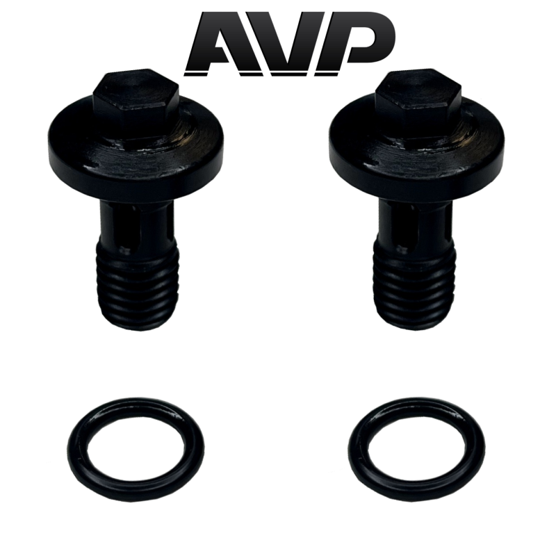 The AVP High Flow Banjo Bolt Kit is designed to upgrade the factory banjo bolts used in the fuel system of 1994–2003 Ford 7.3L Power Stroke diesels. This kit includes two precision-machined, high-flow banjo bolts engineered to allow smoother, more efficient fuel flow by reducing turbulence and restriction at fuel line joints.