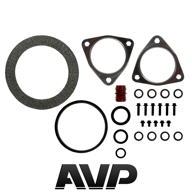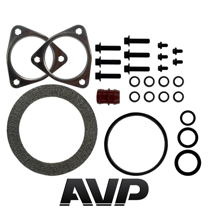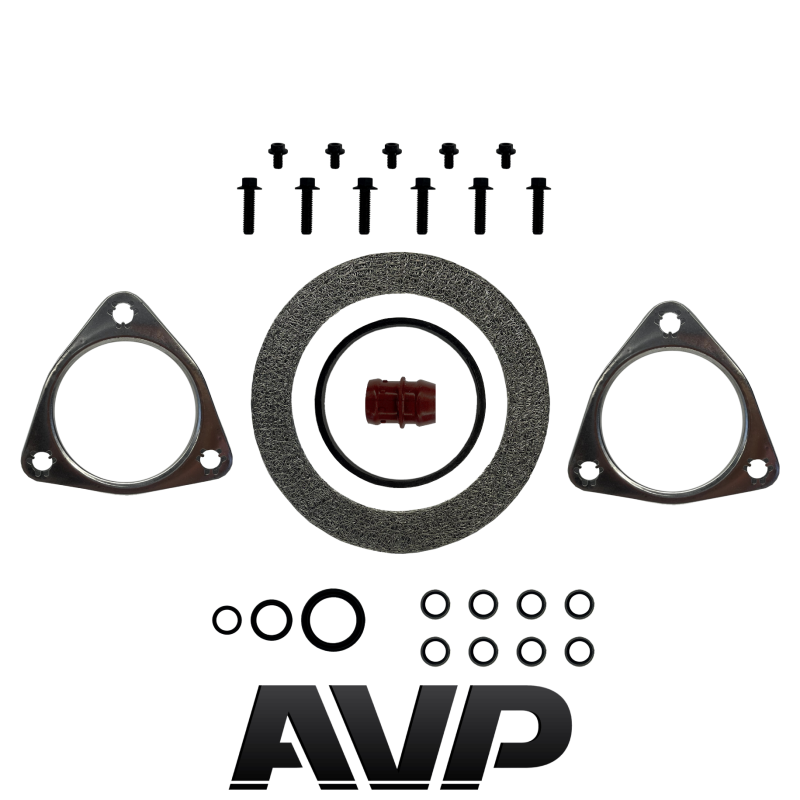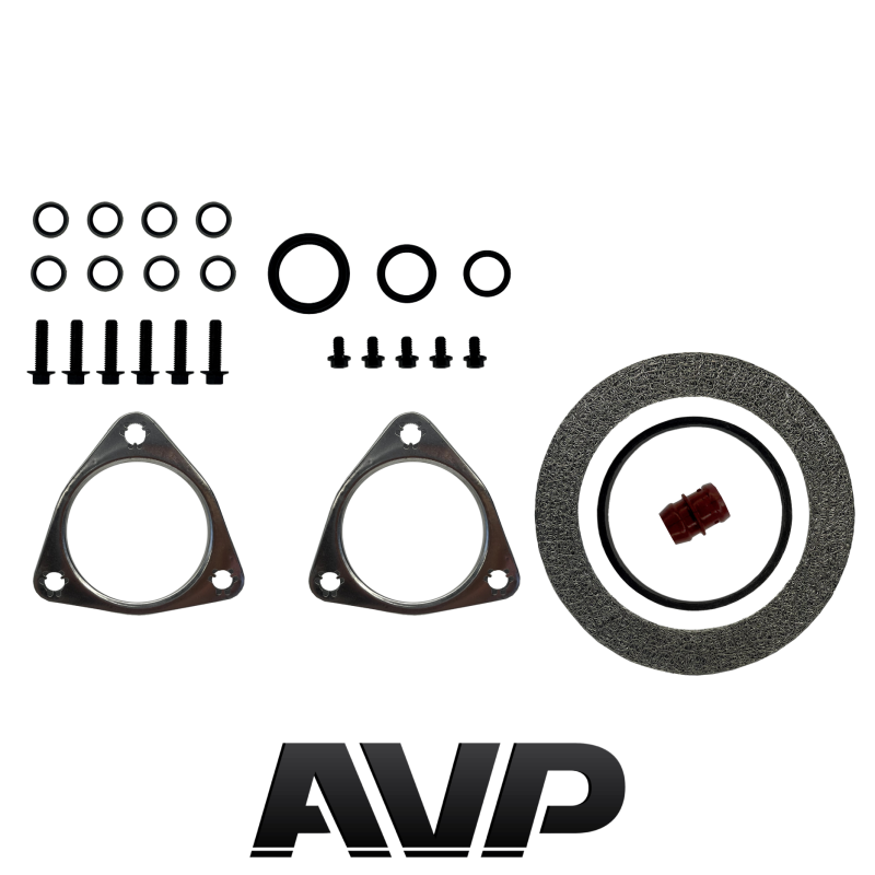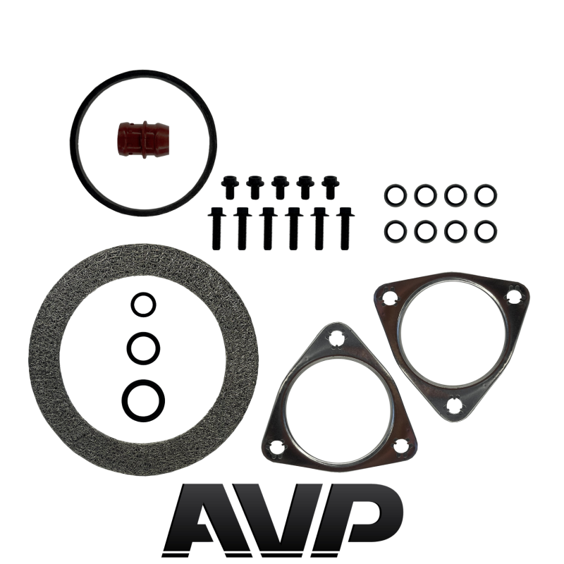 The AVP Turbo Install Hardware Kit is a complete solution for mounting and sealing the turbochargers on 2008–2010 Ford 6.4L Power Stroke engines. Designed as a direct replacement for failure-prone or worn original hardware, this kit ensures reliable, leak-free installation when replacing or servicing your turbos.