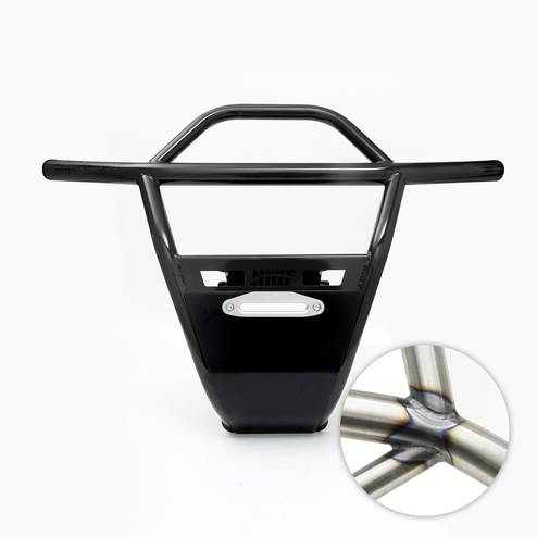 The HMF HD Front Bumper for the Polaris® RZR XP 1000 is built from .095” steel tubing and offers increased protection for the front of the machine. It comes with a 3/16” aluminum skid plate with a cut-out to mount a fairlead. The bumper works with UTV fairleads that have 6” mounting hole spacing. LED lights and and and a UTV Fairlead can be installed on the bumper. The HMF HD Front Bumper adds increased protection and incredible looks to the front of the machine and is available in multiple colors.