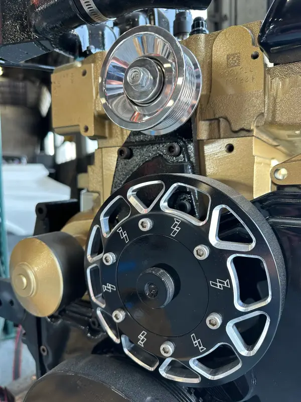 Industrial Injection Billet Fan Pulley Black Anodized (w/Bolts) for Dodge/Ram Cummins Common Rail