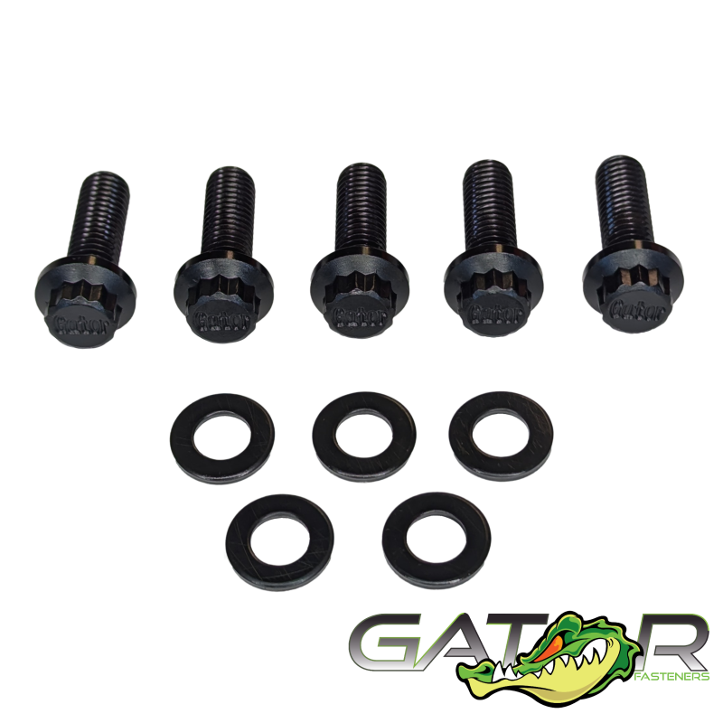Upgrade your hardware with the Gator Fasteners HD220 Bolt Pack, featuring universal M10x1.5x30mm 12-point bolts crafted from our exclusive HD220 alloy. With an industry-leading tensile strength of over 220,000 PSI, these bolts offer exceptional durability and resistance to stretching or failure, far surpassing standard hardware. Each bolt features a 12-point head (approx. 7.6mm tall) for precise torque application and easier installation in tight spaces. The included washers are 2mm thick and 16.7mm wide, providing optimal load distribution and protection for your components. The corrosion-resistant black oxide finish ensures long-lasting performance even in harsh environments. Each kit includes five bolts and five washers, making it perfect for a variety of automotive, diesel, and high-performance uses. Choose Gator Fasteners for unmatched quality and peace of mind-Nothing Bites Like Gator.