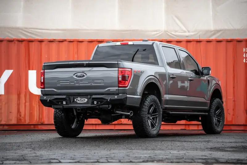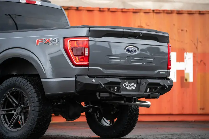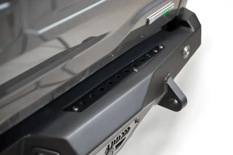 The F-150 Stealth Fighter Rear Bumper brings an aggressive styling to the rear of your truck for an elevated look on and off the road. The bumper perfectly follows the contours of your rig’s factory lines for a low-profile fitment while its angled design offers a sleek appearance. For a complete off-road build, you can pair our rear bumper with any of ADD Offroad’s F-150 Front Bumpers.