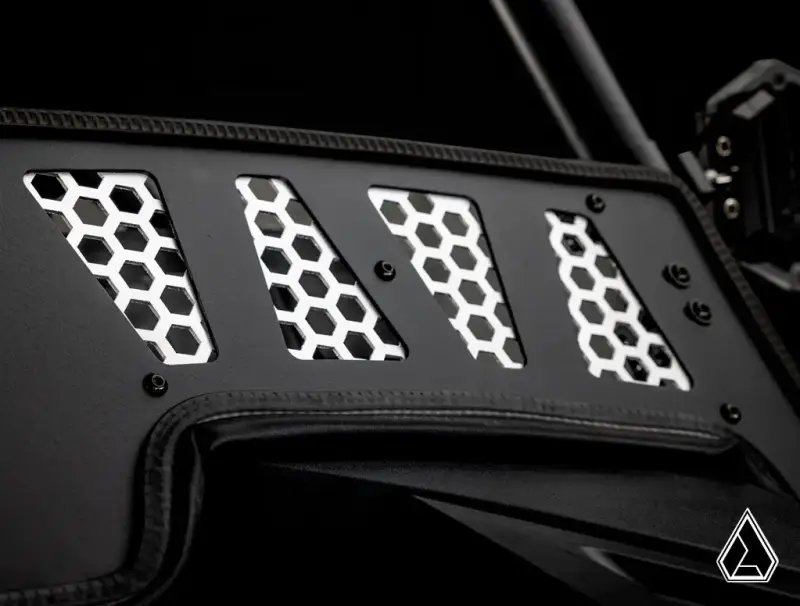 Assault Industries' windscreen features an unpainted logo backing plate and honeycomb screens. They’re easy to remove to add your own custom paint job. Match your machine and make a big statement with this Turbo S windscreen.