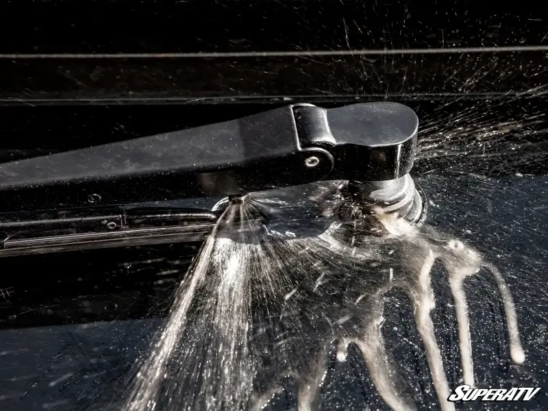 Keep your windshield clean and clear with our easy-to-install windshield wiper and washer kit. The motorized wiper stays out of sight when turned off, and the washer prevents dirt from sticking. Simply use the predrilled holes and connect the rocker switch with the included wiring harness, and you’re good to go.