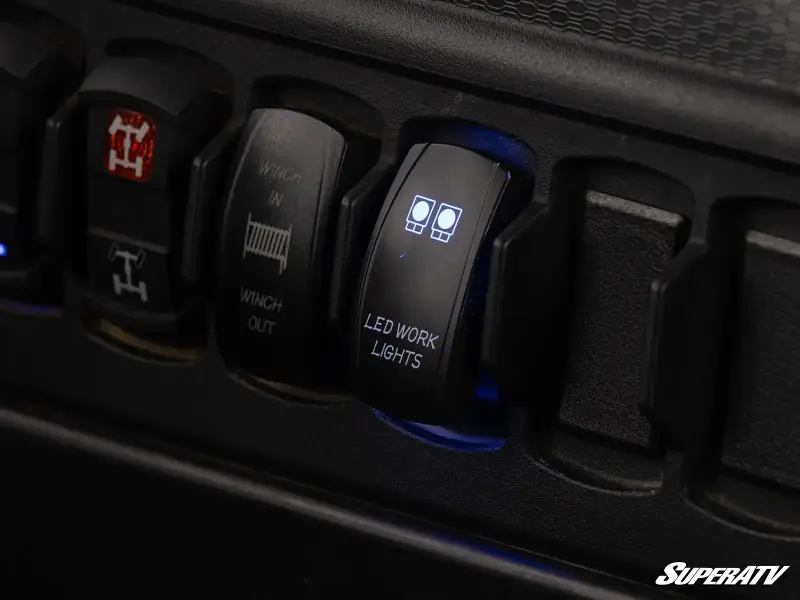 Each LED cube light has a bright white spotlight mode and an amber backlight. The spotlight is perfect for illuminating the trail ahead. The amber lights make great DRLs or backlights and improve visibility in low-light conditions, like fog, dust, or snow. The dash-mounted rocker switch makes it easy to switch between modes as needed.