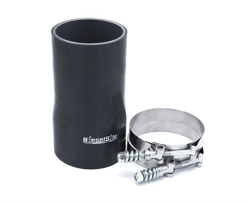 This is a DIESELSITE original product and has been treated with the highest quality. We ordered sample upon sample of hose material and clamps until we were satisfied with the quality of the parts and certain of their integrity in our application. Our boots are made of a hose that is reinforced with a 5-ply braided synthetic fabric. It will not kink or collapse. The special synthetic rubber is exceptionally resistant to heat, ozone, gasoline, gasohol, methanol, ethanol, and diesel fuel. It can withstand the engine heat and 100 psi boost pressure. With care, this is a virtually indestructible boot material.
