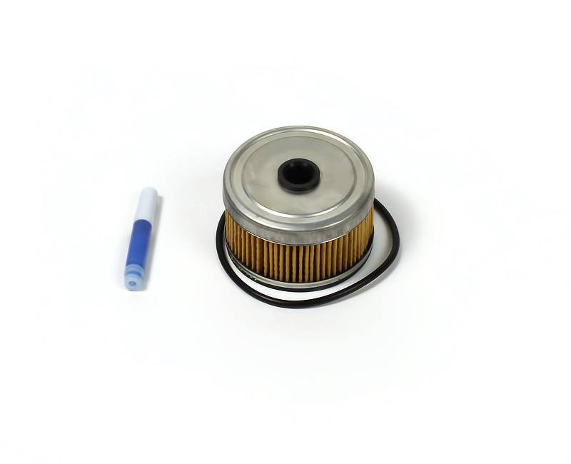 There is a separator cone in the bowl of the filter that removes water and all large particles. Removing the larger particles in this manner greatly extends the life of the filter element. The fuel then travels into the upper section through a 2 micron particle separator. At this point, you have very clean, water free fuel traveling through your system. With a quick peek under the truck you can view the bowl for water and dirt. The water is removed by opening the petcock. As always we use the Dahl brand replacement elements. Dahl perfected this concept and it is still the best. Although we have always used Dahl in our fuel systems, we purchased and tested different brands before making this final decision to stick with this filter.