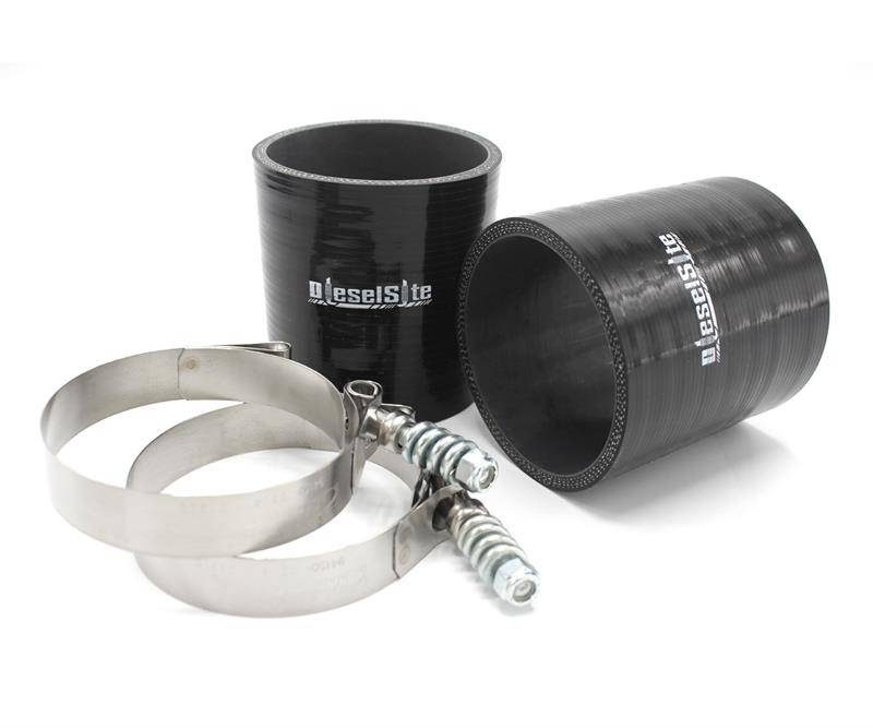 This is a DIESELSITE original product and has been treated with the highest quality. We ordered sample upon sample of hose material and clamps until we were satisfied with the quality of the parts and certain of their integrity in our application. Our boots are made of a hose that is reinforced with a 5-ply braided synthetic fabric. It will not kink or collapse. The special synthetic rubber is exceptionally resistant to heat, ozone, gasoline, gasohol, methanol, ethanol, and diesel fuel. It can withstand the engine heat and 100 psi boost pressure. With care, this is a virtually indestructible boot material.