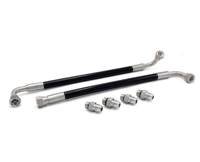 DIESELSITE replacement high pressure oil pump lines for all 1994-2003 7.3L Powerstroke engines. Both lines are stainless braided high pressure hoses with anti-abrasion coating and all stainless steel ends. No more leaky or failed quick-connect style hoses!
