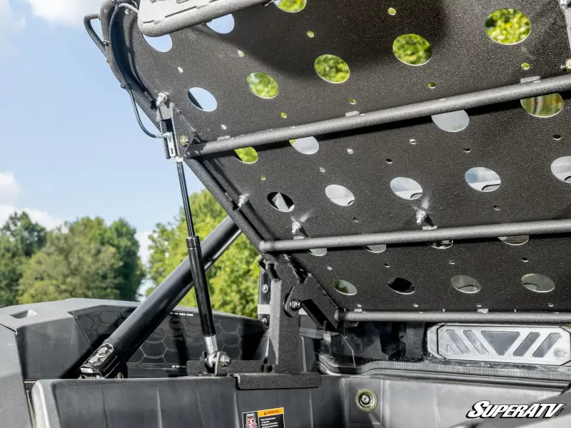 Our RZR XP cargo rack doesn’t block your existing storage. The gas struts make it easy to raise or lower the rack, giving you access to your RZR’s cargo bed. And the struts keep the rack locked in place, so it won’t bounce around on rough rides.