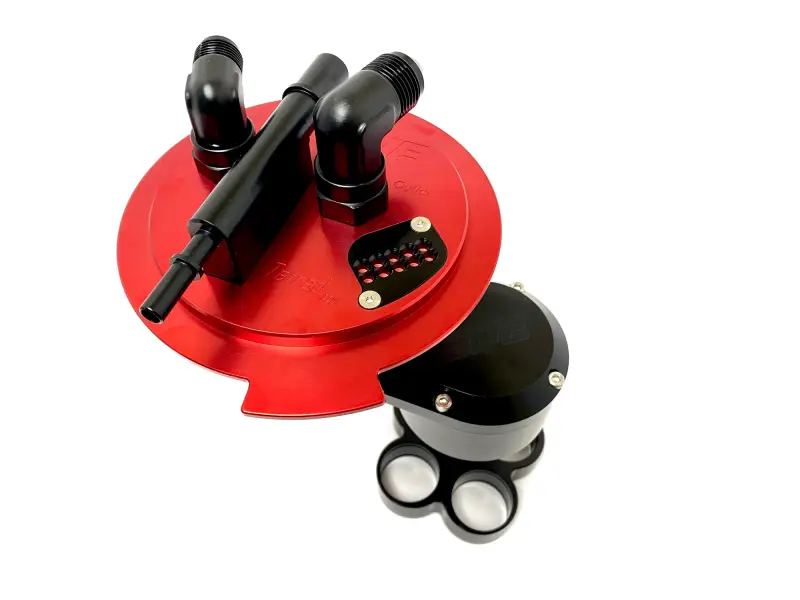 The Tetrad is completely billet with no brackets or hoses. The fuel pumps are held by an o-ring isolated in a billet housing which dampens noise and allows for easy adjustment. The F150 Tetrad also includes all of the factory evap connections including internal and external to the tank along with the roll over valve. The Tetrad is fully anodized to resist corrosion from E85 and other corrosive fuels.