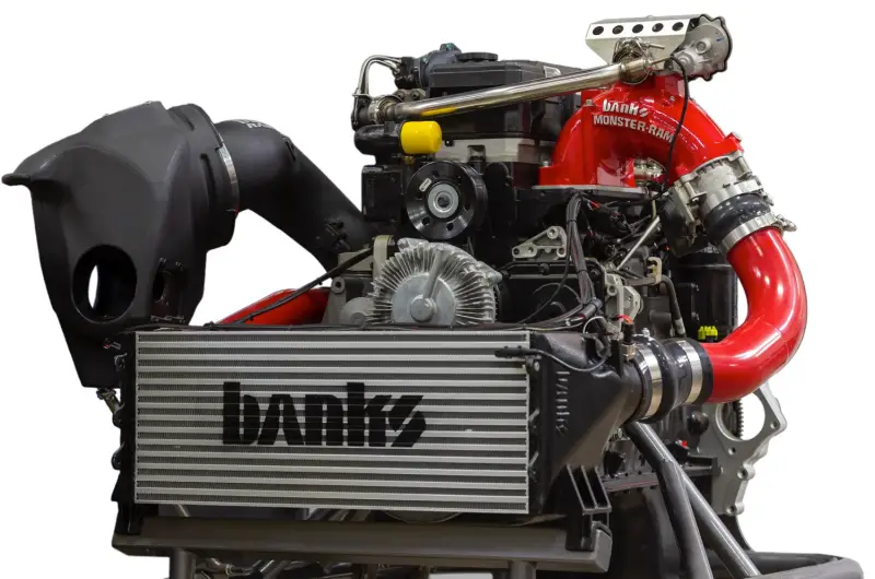 The Monster-Ram improves airflow from the intercooler. It flows 72.7 lbs/min MAF (Mass Air Flow) with Banks’ High-Flow Heater and Billet Intake Plate compared to stock's 38.6 lbs/min MAF.