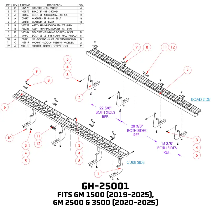 GEN-Y Hitch Running Boards for Chevy/GMC (2020-25) 2500HD/3500HD Standard Cab - RS & CS