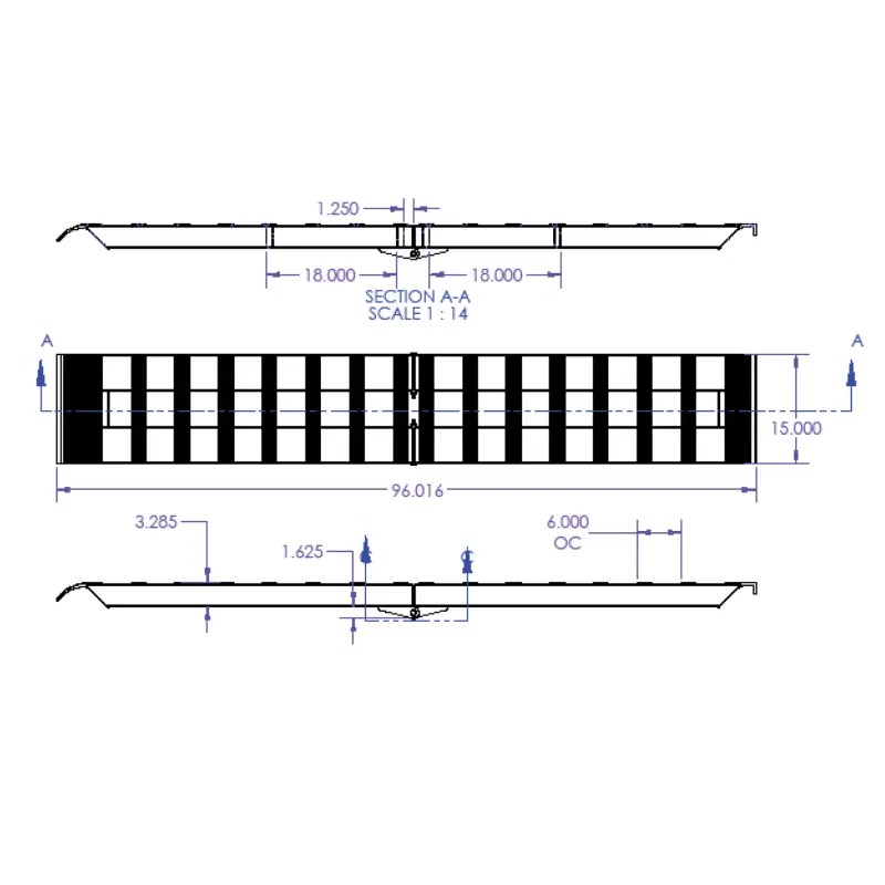 •8′ Ramps: 96″ Long x 15″ Wide x 3.5″ Thick