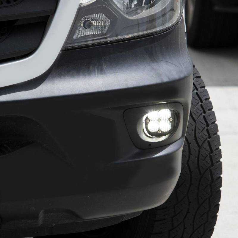 The Baja Designs Squadron Sport Fog Pocket LED off-road light kit for the 2014-2018 Mercedes Sprinter empowers enthusiasts to explore off-road, day or night. With 3,165 raw lumens per light, this kit dramatically enhances visibility in adverse conditions like dust, rain, fog, or mist-helping you spot potential hazards more easily for safer navigation.
