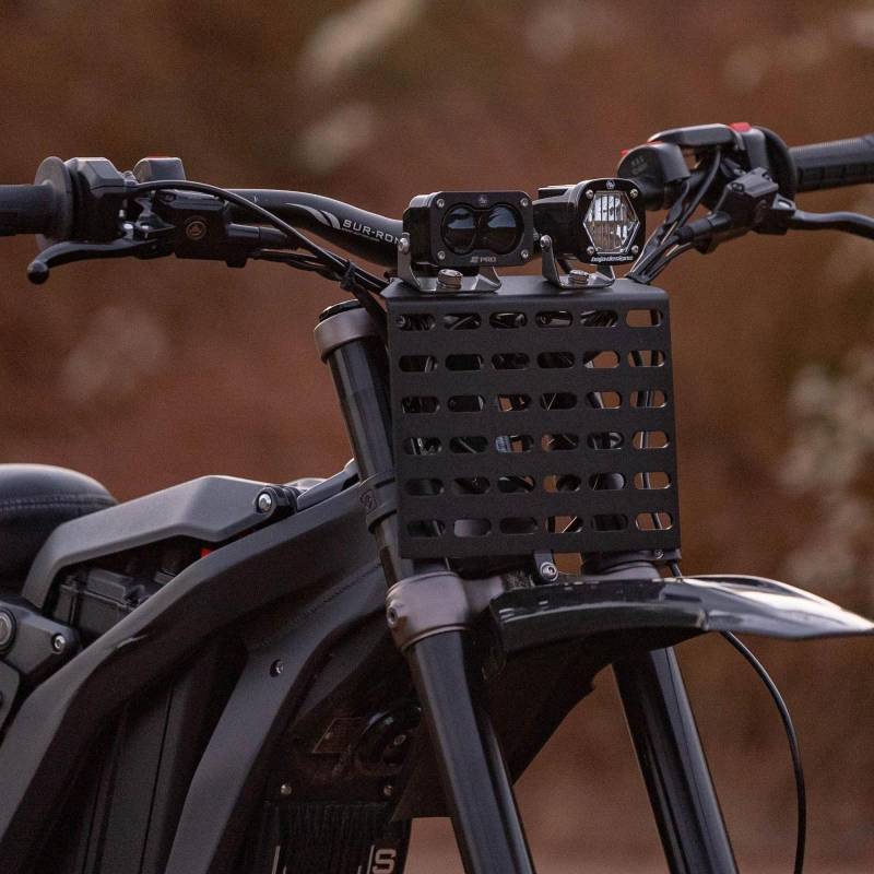 What sets this kit apart from any other Sur-Ron kits on the market is the included Baja Designs molle panels for the front and rear of the bike. This is the same panels used by the United States Special Forces and allows a usable storage alternative for hunting equipment, tools, spare parts and anything else that is needed while on a ride.
