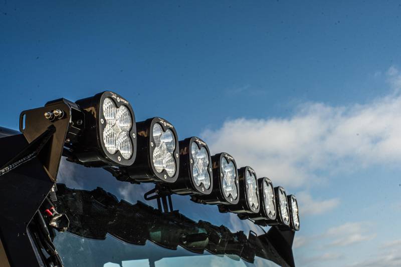 This kit includes 8 XL Sports producing 25,296 total raw lumens of forward projecting light that has a smooth blend due to the use of spot, driving combo and wide cornering lenses. The XL Linkable system provides 45 degrees of vertical pitch adjustment within each light or the entire unit.