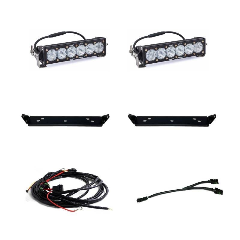 The Baja Designs OnX6+ Behind the Grille kit for the 2021-on Ford Raptor is designed with both functionality and visual appeal in mind. This kit offers two of our powerful OnX6+ 10-inch LED light bars in the choice of clear or baja amber lens colors, mounting brackets, wiring harness and hardware.