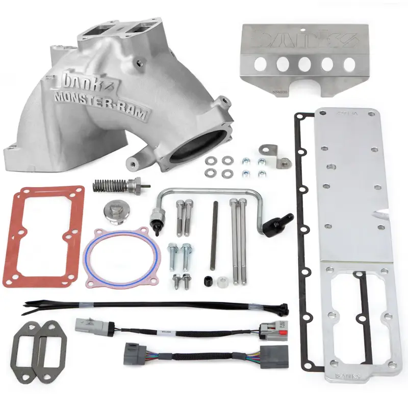 Banks Monster-Ram improves throttle response and fuel economy by eliminating airflow restrictions. Prevents severe engine damage by replacing the killer grid heater with the Banks high-flow billet intake plate. The factory heater can't fail if it's not there. Monster-Ram is the only 50-state emissions-compliant RAM intake elbow.
