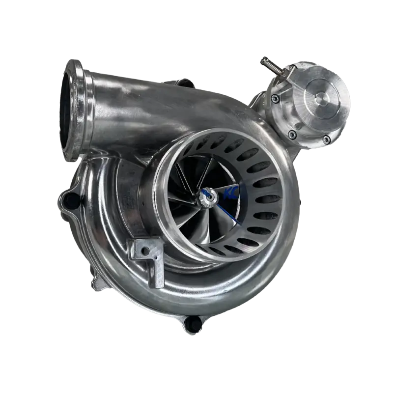 Improve your 7.3 Power Stroke engine's performance with the KC300x Stage 1 63/68 Gen 2 Turbo. This turbo features a 4" ported housing with drilled anti-surge for better flow, a 63mm 7x7 SXE style compressor wheel with extended tip technology, and a 68mm SXE style turbine wheel. The KC300x is a reliable journal bearing drop in turbo perfect for increasing your 7.3 Power Stroke's performance.