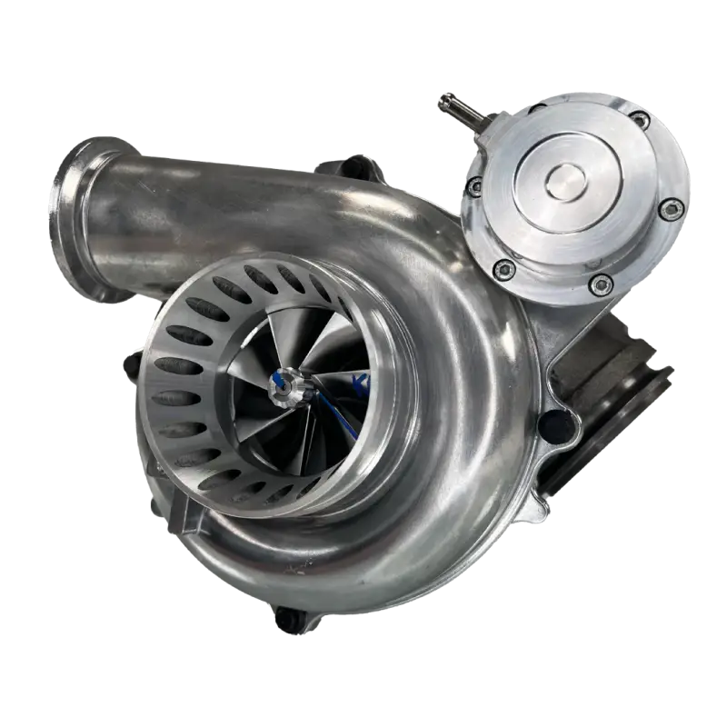 Improve your 7.3 Power Stroke engine's performance with the KC300x Stage 3 66/73 Gen 2 Turbo. This turbo features a 4" ported housing with drilled anti-surge for better flow, a 66mm 7x7 SXE style compressor wheel with extended tip technology, and a 73mm SXE style turbine wheel. The KC300x is a reliable journal bearing drop in turbo perfect for increasing your 7.3 Power Stroke's performance.