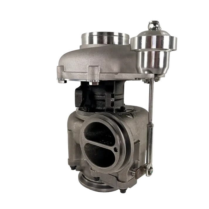 Improve your 7.3 Powerstroke engine's performance with the KC300x Stage 2 Gen 3 Turbo. This turbo features a 4" ported housing with drilled anti-surge for better flow, a completely redesigned Gen 3 7x7 SXE style compressor wheel with extended tip technology and with upgraded aero to aid in quick spool, and a SXE style turbine wheel with a thicker shaft inside of completely redesigned compressor and turbine housings.