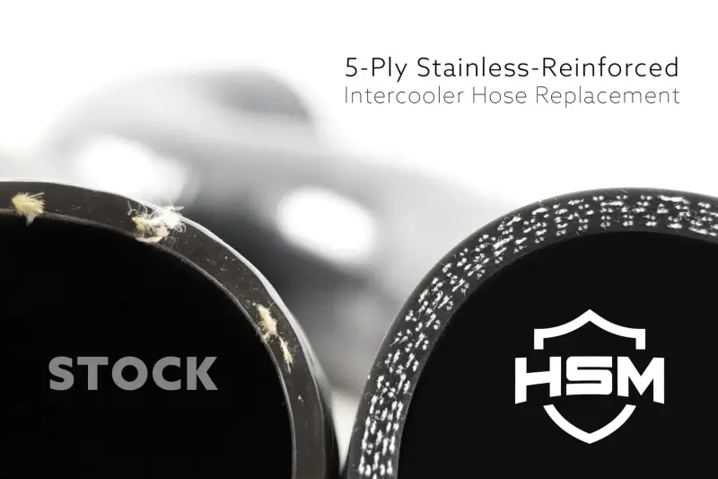 - 5-ply stainless-reinforced silicone hose engineered to handle high boost pressure and elevated charge-air temps