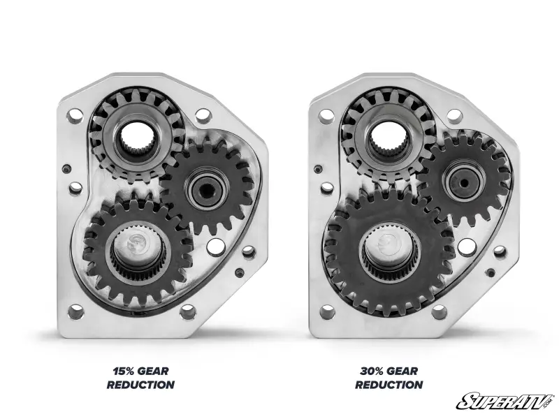 If you move up to a 30% gear reduction, you’ll be ready to take on bigger, sloppier mud holes. A 30% gear reduction gives you a big boost in torque so you can keep your wheels turning no matter how deep the mud gets. That extra torque also means you can upgrade to huge tires that bring out the true potential of your machine. When you’re done with the mud, a 30% gear reduction can send you through trails and rocks just as easily.