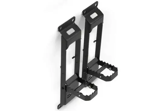 Our Jeep Door Hinge Mounted Steps are the perfect solution for convenient access to your roof rack. Say goodbye to the struggle of reaching your gear by standing on your front or rear tire and leaning over to reach your rack. Our innovative steps are designed to be easily mounted at two points along each door hinge, both front and rear, providing you with effortless entry to your roof rack, roof top tent, or any equipment you have stored above. With our anti-rattle ball-catch design, you'll experience a secure and stable grip like never before. These steps are engineered to eliminate any annoying rattling noises, ensuring a smooth and silent operation. When you're not using them, the steps conveniently fold up and out of the way, maximizing space and maintaining a sleek look.