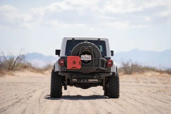 •Body mounted carrier allows the tire to sit higher than factory to help departure angles with larger tires off-road