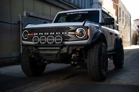 Our 7” Halo Elite Round Lights can be paired with light brackets or off-road bumpers/bull bars with round light mounts to enhance your visibility when in dim or dark conditions. Our lights feature an amber or clear halo light that can be activated when the main light is not in use. This accent mode is perfect when you are cruising down well-lit neighborhoods or city streets during the day. The main LED lights produce 3,600 lumens, and they are rated at 50,000 hours of use. The combo flood and spot light pattern allows you to identify obstacles far ahead when off-road while also keeping an eye out for ditches, animals, and other hazards present on both sides of the trail. Our round lights are IP 68 rated, meaning they are water and dust resistant. They emit 5700K, bright white color for clearly illuminating obstacles. The lights are built for the harsh off-road environment with their shatterproof UV resistant polycarbonate lens and weather resistant plug. The durable aluminum housing is finished in a resilient satin black powder coat for a sleek look. With our Elite Round Lights, you can safely navigate low-light terrain while elevating your rig’s aesthetic in the city by toggling between the driving and off-road light modes.