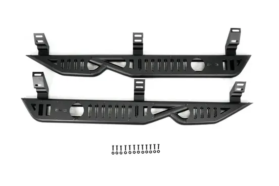 Our OE Plus Land Cruiser Side Steps feature gripped top plates for secure footing when in wet or dusty conditions. They mount directly to your body for a sturdy design that won’t flex when stepped on. The step’s low-profile design retains the factory side clearance, so you can navigate rocky trails and uneven terrain. Their durable steel construction provides protection from light trail debris kicked up by your tires and shrubs lining the trail. The side steps are finished in a resilient micro-texture black powder coat that complements your Land Cruiser’s sleek styling. They are fully bolt-on for a straightforward install process. Our OE Plus Steps perfectly combine style and utility for a functional step that enhances your rig’s off-road capabilities.