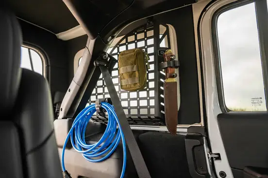 Couple these panels with our Molle Tool Mounts to easily attach a flashlight, recovery tools, air up/down hose, and other equipment/gear. The panels can be run with or without the hardtop, and they can remain installed when attaching or removing the hardtop for a smooth transformation process. They are made from durable steel, and are finished in a sleek micro-texture black powder coat that accents your Jeep’s interior. The panels are fully bolt-on for a quick and easy install process. With our molle panels, you can maximize your storage capabilities and keep your main cargo area free for larger gear.