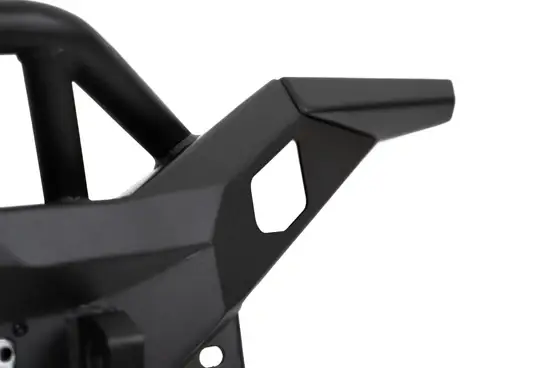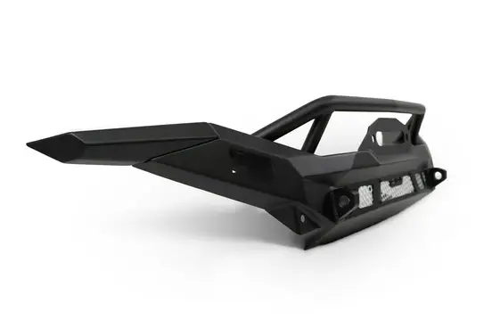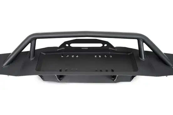 Our MTO Series Wrangler & Gladiator Winch Front Bumper features a full-width design for maximum protection on the trail. Its aggressive design and flared wings look great with the JK factory fenders and the JL/JT Rubicon and Non-Rubicon fenders. The recessed winch tray accepts multiple size winches, and sits protected behind a tubular bull bar. Additional recovery options are provided by the 1-inch D-ring mounts that take ¾-inch shackle pins. Sitting behind paintable aluminum accent panels is a mount that can take a DV8 Elite 20” single row light bar, Baja Designs S8 20”, or Rigid SR 20” LED light bars. On each wing of the bumper is a mount for a 3-inch light pod. The bumper is finished in a micro-texture black powder coat, and features a fully bolt-on installation. The MTO Series front bumper is the perfect balance of durability, style, and utility.