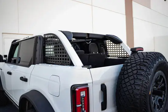 The panels are designed specifically with your Ford Bronco in mind – they comfortably fit around the rear roll bars and can be mounted in multiple positions more easily thanks to their direct bolt-on installation. Plus, they’re as versatile as your vehicle: they work with or without a hardtop, so you don’t have to worry about taking off the top every time you want to switch up the way you store your cargo.