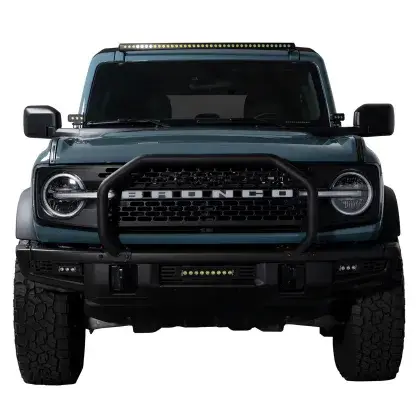 Transform your Ford Bronco’s front-end appearance and enhance grille protection with the Putco Single Hoop Grille Guard. Made from heavy-duty 14 GA steel tubing, this rugged accessory defends your vehicle against even the most challenging off-road obstacles while giving your Bronco the bold, aggressive look it deserves. Designed with the best OEM style, the hoop perfectly complements the Bronco’s design without interfering with the iconic Bronco logo. Built for maximum durability, the hoop is e-coated and finished with a textured black powder-coat for superior corrosion resistance, ensuring long-lasting protection. Installation is quick and easy with a 100% bolt-on design, using the six existing factory screws—no drilling or modifications required. Get ready to tackle the most challenging terrain with confidence and style.