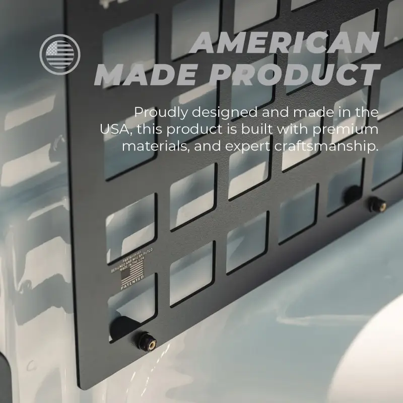 The Putco Tailgate MOLLE Panels allow quick access to your critical tools or overland gear. Each tailgate panel is 100% custom and engineered to fit perfectly into each make and model, utilizing the existing OEM mounting points in the tailgate. This means it will install in minutes, regardless of whether you have a Jeep Wrangler, Ford Bronco, or Late-model Truck, and will require absolutely no drilling. Each MOLLE Panel is CNC-machined from 10-gauge aluminum and finished perfectly with a mini-textured black powder coat. Additionally, each MOLLE kit includes two MOLLE Mounts compatible with industry-leading mounting accessories, such as Quickfist, Kolpin, and many more.