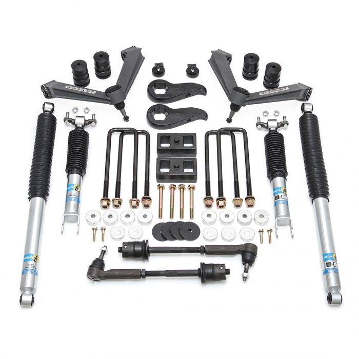 Includes DOM tube steel upper control arms with TCT maintenance-free pivot bushings and 1-ton ball joints CNC machined aircraft-grade billet aluminum top and bottom strut spacers AT4
