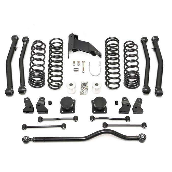 Engineered to retain the factory-equipped FOX 2.5 shocks and hydraulic jounce bumpers. ‚¬ Includes tuned 4" lift coil springs developed to improve ride and handling both on and off-road while allowing for maximum articulation with the FOX shocks. ‚¬ Features robust ReadyLIFT Terrain Flex lower control arms with Terrain Control Technology (TCT) maintenance-free, non-bonded pivot bushings. ‚¬ Includes longer front/rear sway bar end links, adjustable front track bar, and all-new heavy-duty rear track bar bracket for proper suspension geometry. ‚¬ For use only on Jeep Gladiator Mojave Edition. ‚¬ Allows for up to a 37+ inch tall tire on a 10" wide wheel with 0 mm offset.