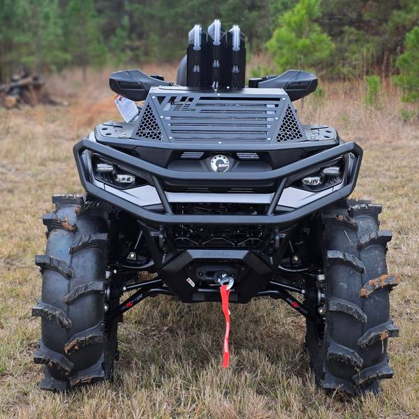 High Lifter knows that if you ride hard your radiator can quickly get clogged and covered in mud causing your engine to overheat. Our Radiator Relocation Kit allows you to move your Outlander's radiator from the stock location to higher up on the front rack, giving it more airflow and keeping it out of harms way.