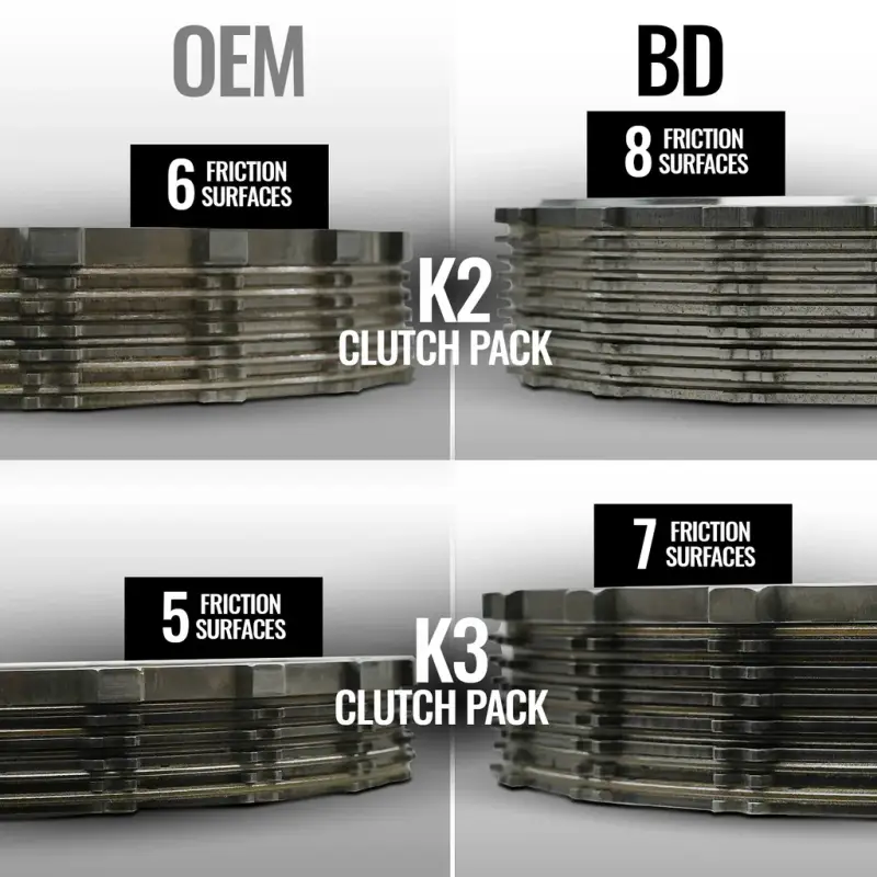 •More clutches compared to stock and competitors for increased clutch torque capacity and durability