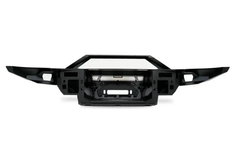 Confidently tackle the trails with our updated Made to Overland Bronco Front Bumper. A hidden winch mount provides recovery options while remaining high clearance. Illuminate the path ahead with a center 20-inch single row light bar, complemented by two 3-inch pod lights mounted to provide dedicated side-angle lighting. Included with the bumper is a bolt-on steel bull bar that can be equipped with up to seven 3-inch pod lights above the bar or one 20-inch dual row light bar below the bar.