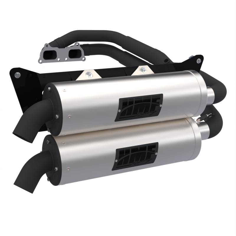 HMF Exhaust Systems for Polaris RZR XP 1000, Titan Quiet Series, Dual Full System, Stainless Steel, Billet - Recessed, Blackout End Cap