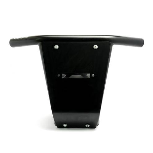 The HMF LT Front Bumper for the Polaris® RZR® is a small, durable, lightweight front bumper that's ideal for riders looking to add front end protection without a lot of weight. Built from .095" steel tubing, the HMF LT features a universal light bar mount on top. If you're running a winch, the Skid Plate is available with or without Fair Lead mounts. A winch will mount in the stock Polaris® mounting location and the skid plate with Fair Lead holes will fit a standard 6" Fair Lead (sold separately). The bumper works with UTV fairleads that have 6" mounting hole spacing.