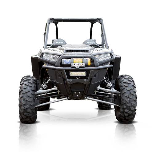 The HMF HD Deluxe: Front Bumper for the Polaris® General is built from .095" steel tubing and not only protects the front of the machine but offers an integrated winch mount plate for most winches up to 4,500lbs. The bumper works with UTV fairleads that have 6" mounting hole spacing. LED Lights and a UTV Fair Lead can be installed on the bumper (See Mounting Options) and the bumper itself adds an incredible look to the front of the machine.