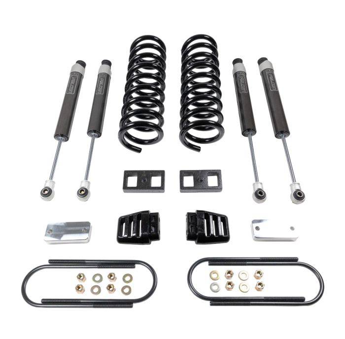 The new Ram HD 3" Coil Spring Lift Kit is specifically designed for Heavy-Duty applications utilizing ReadyLIFT-engineered new front coil springs and Falcon 1.1 Monotube front & rear shocks. The 3" kits are equipped with front and rear Falcon shocks, Heavy-Duty front coil springs, and bump stop spacers. The 3500 kit includes rear blocks and U-bolts to achieve a neutral, lifted stance. The 3" kits allow up to a 35x12.50 tire and 20x9 wheel with a 0 offset. ReadyLIFT's kit provides plenty of clearance for larger aggressive tires and wheels delivering a muscular, tough look, all while improving the factory ride quality.