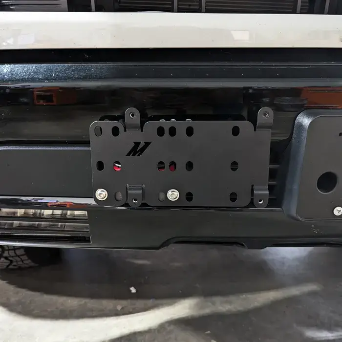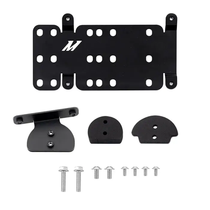 This Mishimoto License plate relocation kit allows fresh airflow to pass through the transmission cooler, AC condenser, and radiator, ensuring optimal performance from all systems. Our bracket is constructed from 3mm-thick steel, ensuring high strength and rigidity. To provide resistance against corrosion, our bracket is powder coated in a durable black finish. The license plate bracket features multiple mounting locations, allowing for bumper-mounted accessories like light bars or winches. Our License plate relocation kit includes all stainless-steel hardware needed for mounting, as well as a Mishimoto license plate frame for a clean install. As with all our products, this kit includes our signature Mishimoto Lifetime Warranty.